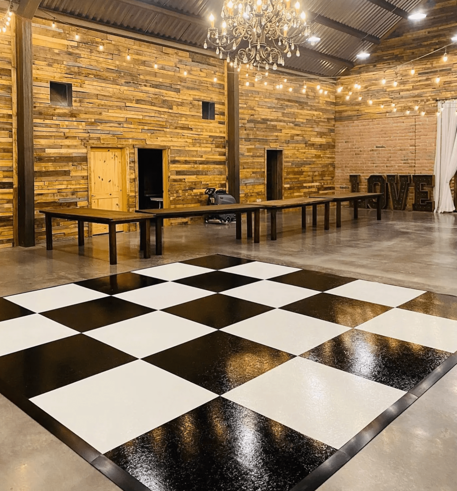 Elevate your event with our premium black and white checkered dance floor. Ideal for weddings, galas, and upscale parties, it offers a timeless aesthetic and a stable, slip-resistant surface. Available in various sizes to suit your venue and guest count.